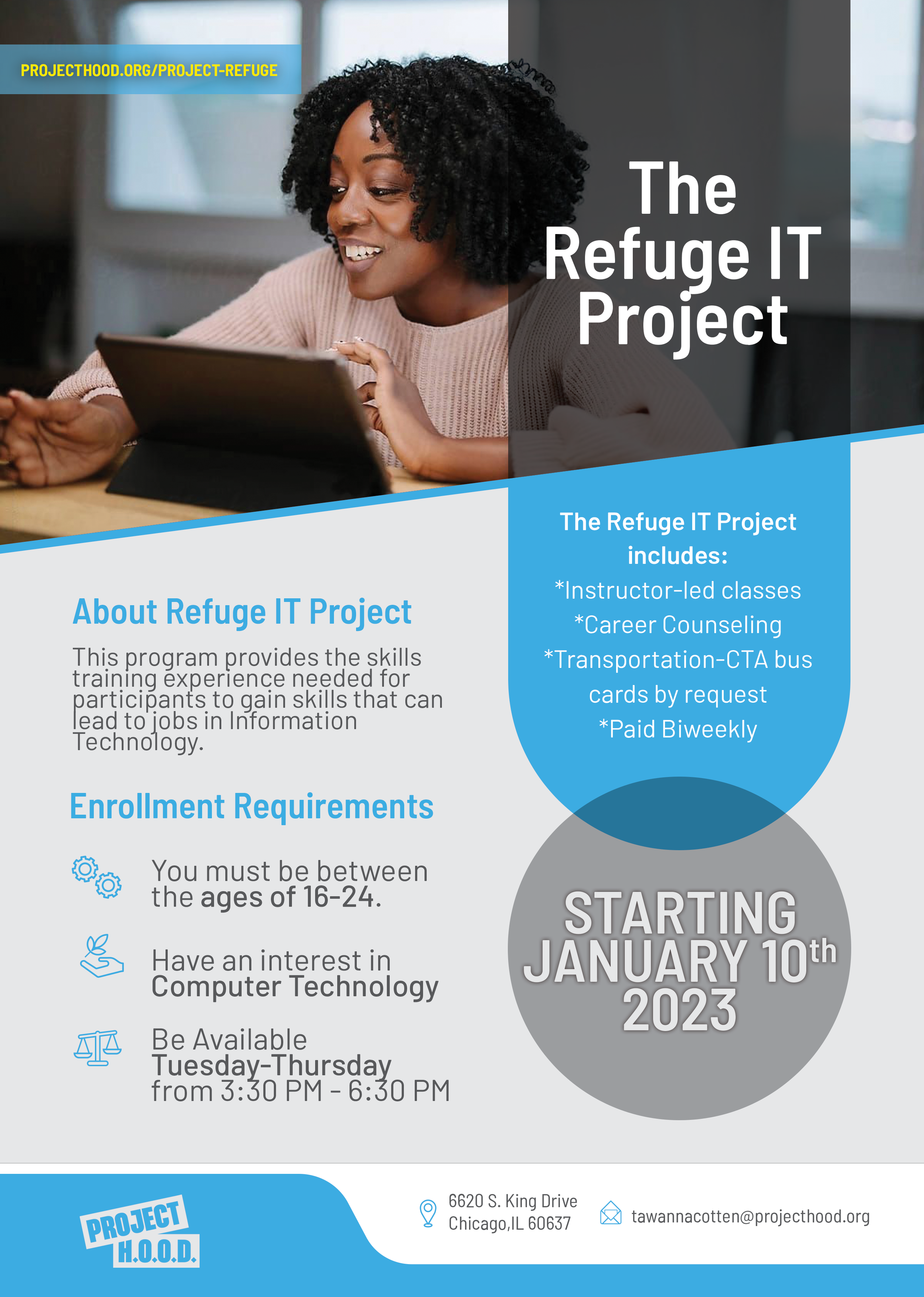 Project H.O.O.D. is passionate about reaching the next generation of leaders. Every Friday night, ProjectREFUGE provides a safe place for teenagers, 12 - 17 years old, to connect with friends and adults who care about them. Attendees receive music, arts, dinner, games, entertainment, mentorship, and activities designed to promote expression, a successful life and better decision-making skills.